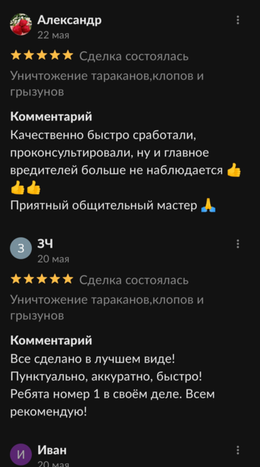 Если вы впервые столкнулись с проблемой вредителей, то не стоит переживать, даже самый запущенный случай решаем. Но заказывать дезинсекцию за 1000 рублей не стоит, поскольку никто не будет делать качественную работу за такую сумму.
